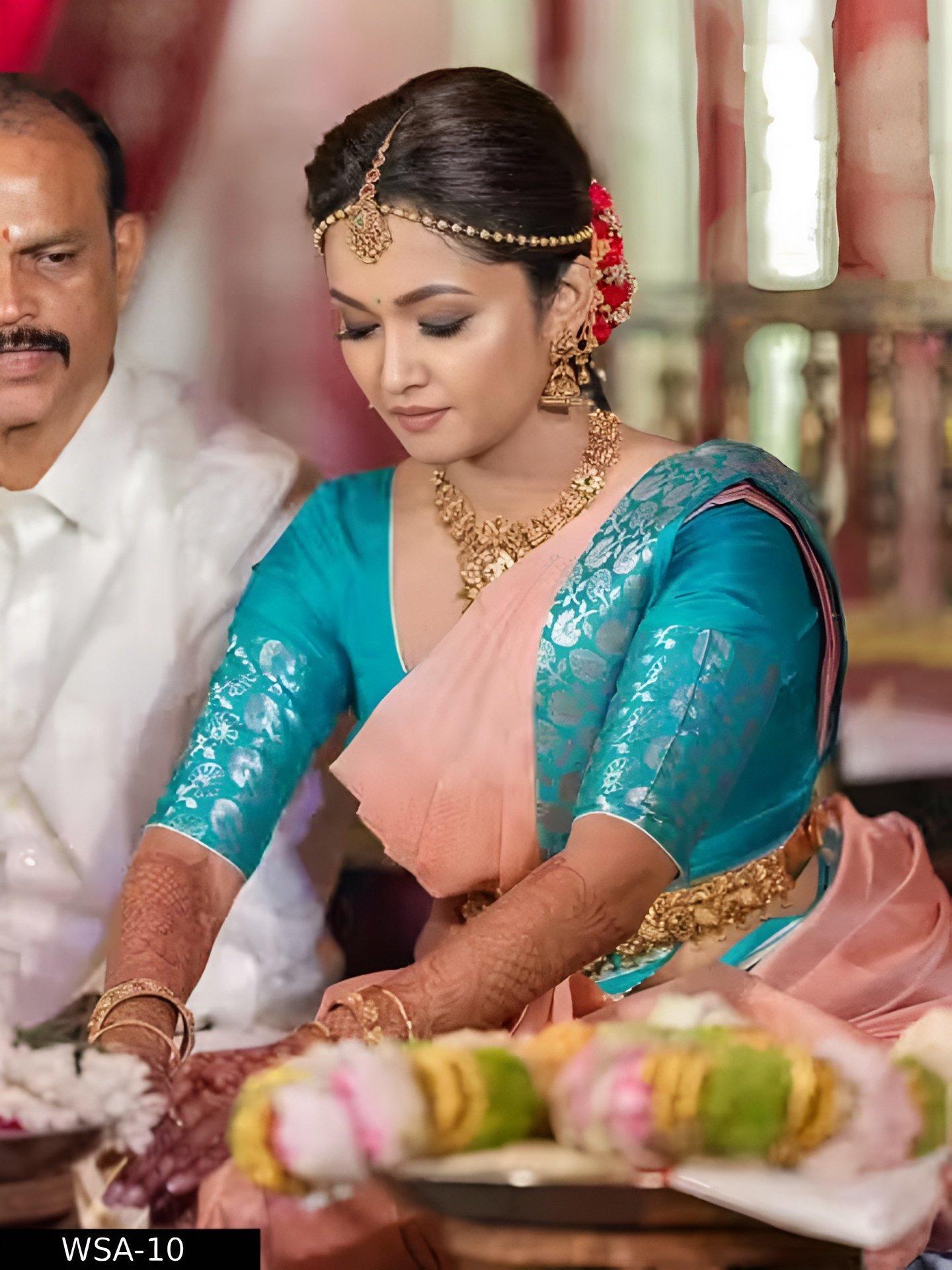 A blend of traditional charm and modern style, this soft silk Banarasi Kanjivaram Saree comes with a stylish blouse for all special occasions.