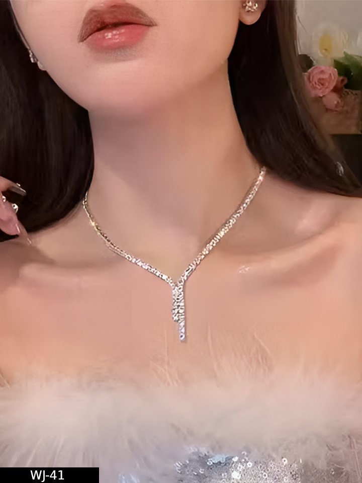 Description: Add a touch of luxury with this stylish silver crystal necklace and earring set designed for modern women. Featuring a sparkling crystal design that enhances the neckline, this lightweight set offers a premium silver look at an affordable price. Perfect for western dresses and gowns, it is ideal for parties, weddings, cocktail nights, festive occasions, and evening events. Trendy, elegant, and fashionable jewellery for women and girls.
