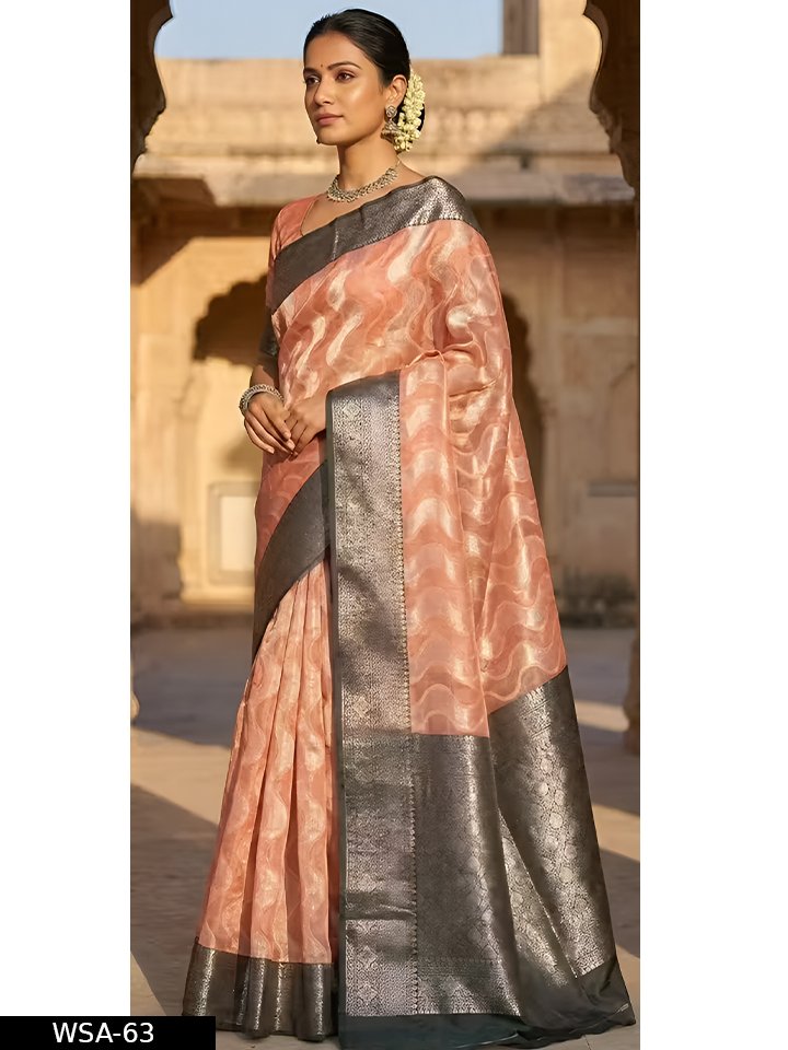 Name: Luxurious Peach Shimmer Art Silk Saree with Woven Wave Pattern & Contrast Zari Border
