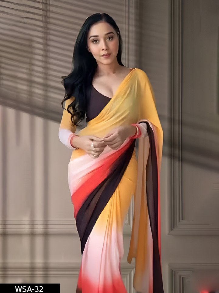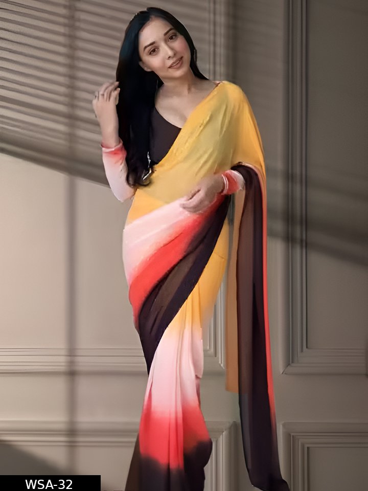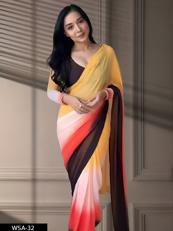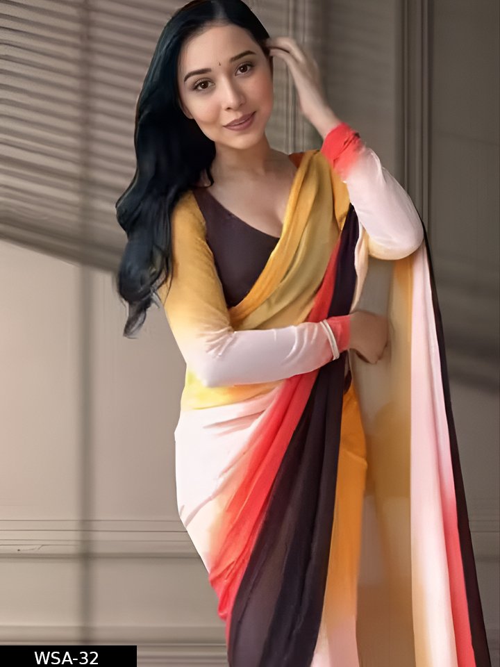 Name: Stylish Georgette Pre-Draped Saree with 4-Colors Stripe Effect