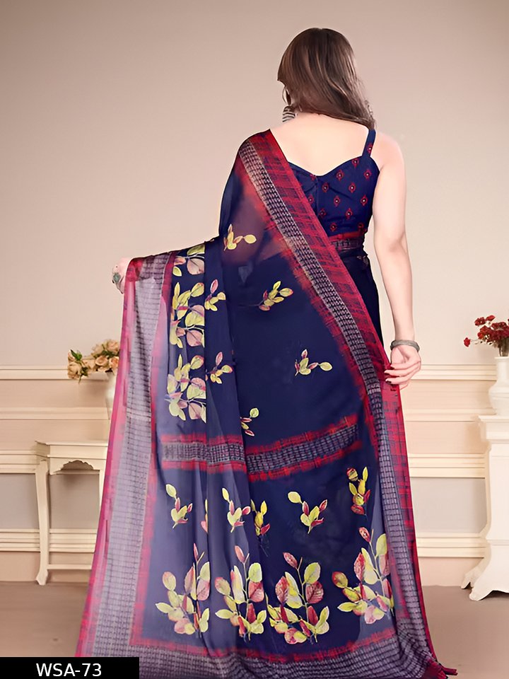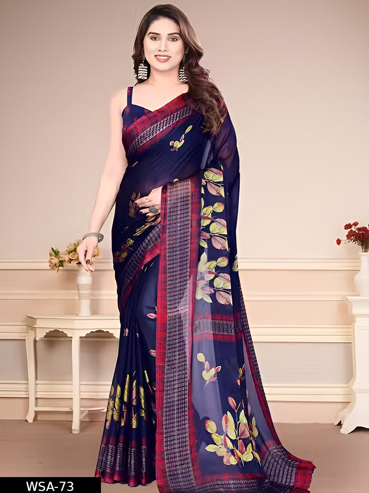 Women’s Chiffon Saree with Floral Print and Designer Border